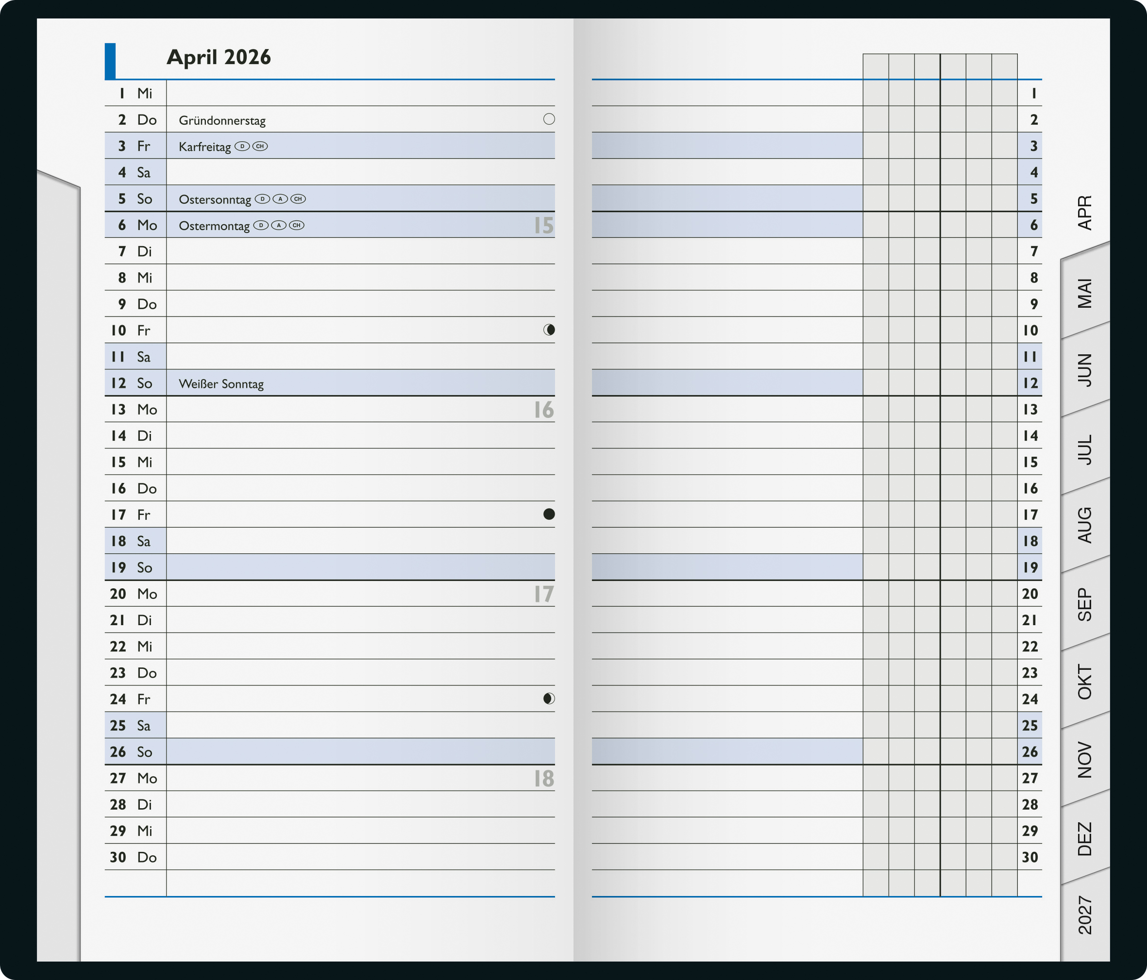 | Sonstiges: | Monatstaben für schnellen Zugriff |