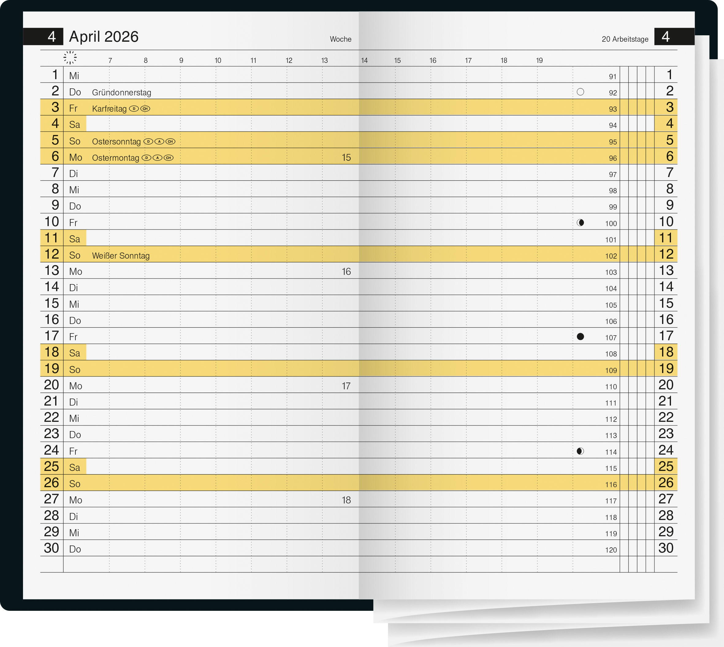 - 2 Seiten = 1 Monat