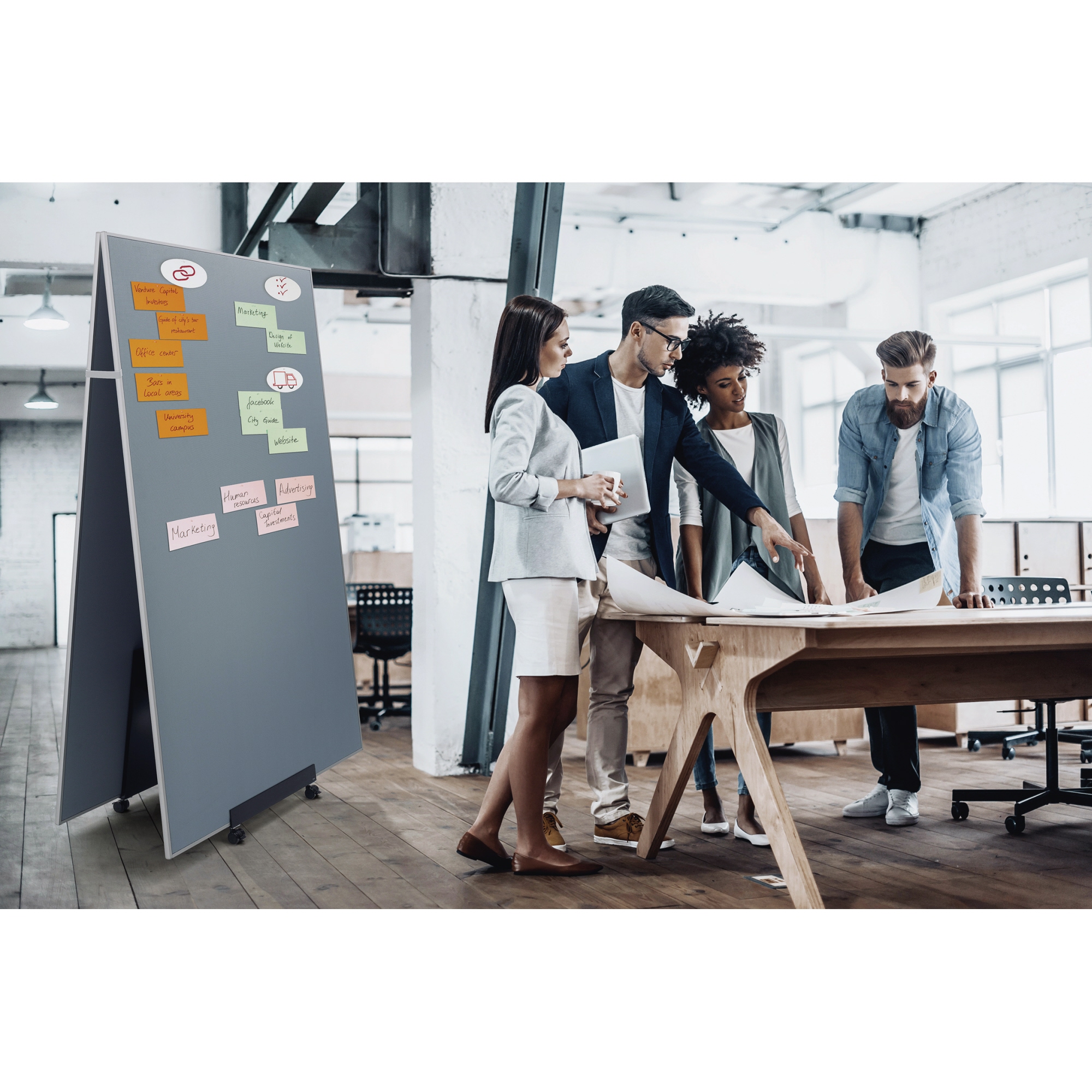 - inkl. Präsentationswand Textil 120 x 180 cm (B x H) MU011, Tafelständer Meet up MU050, Moderationskoffer MU250